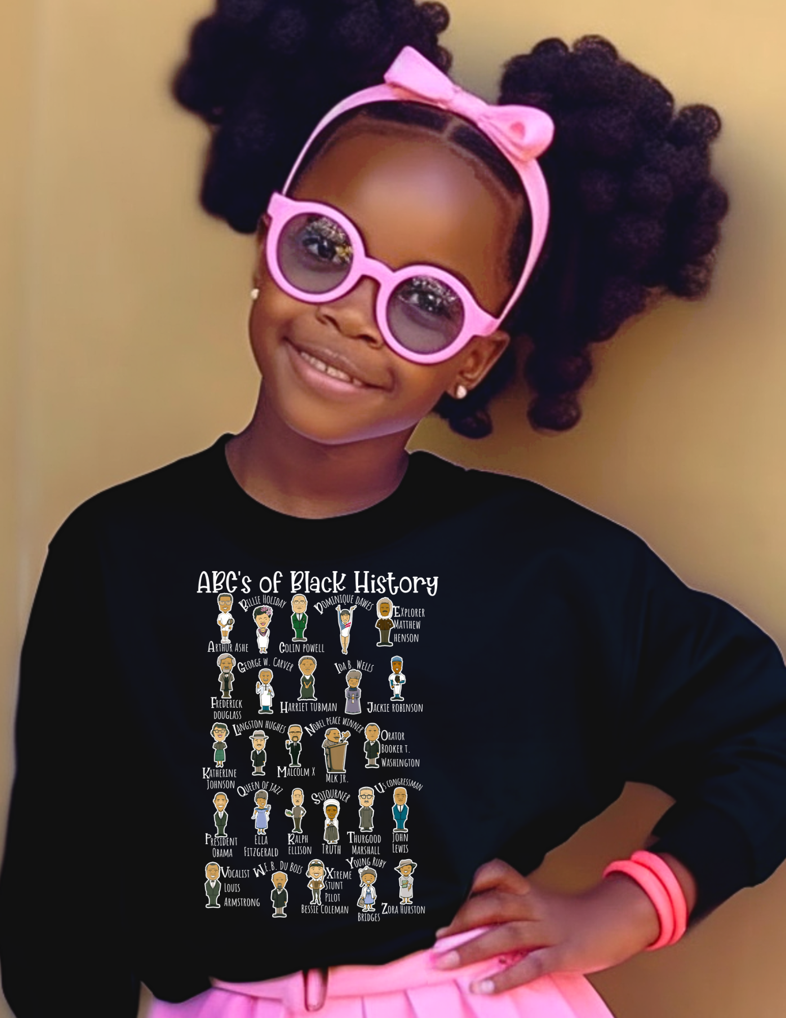 Celebrate Black excellence from A to Z! This youth-friendly crewneck features influential Black leaders and trailblazers in a fun, educational design. Soft, comfortable, and perfect for school, Black History Month, or everyday wear.