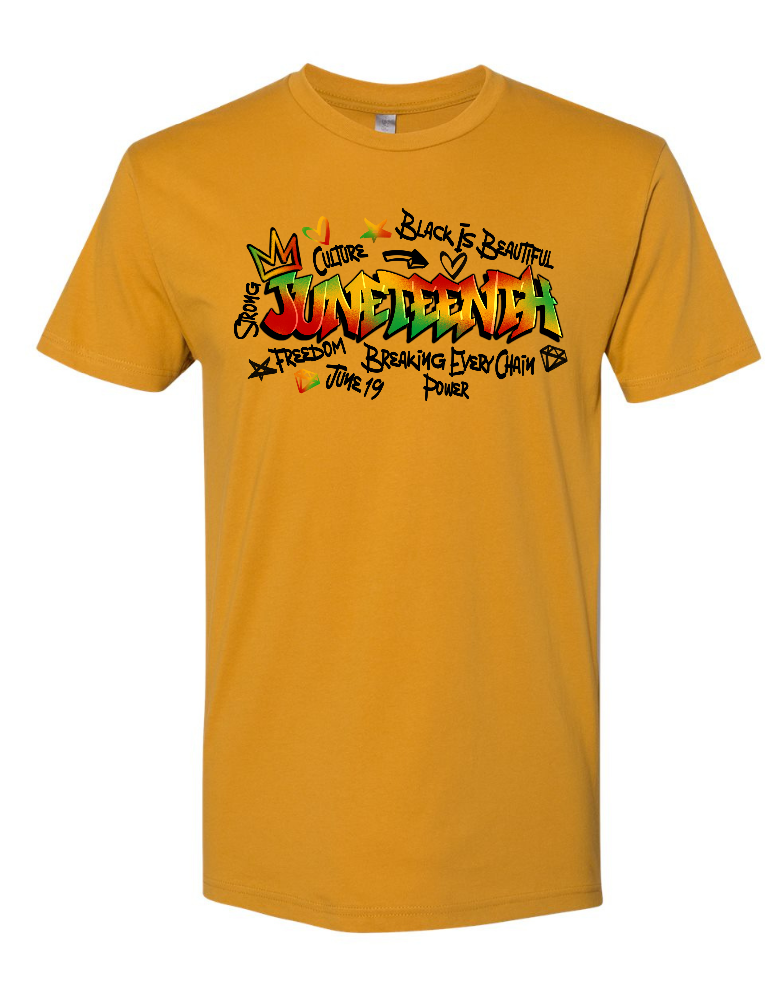 Celebrate freedom and heritage with our Juneteenth Graffiti design tee. Made with 100% cotton, this shirt displays a powerful symbol of unity and progress. Show your support for history and community.