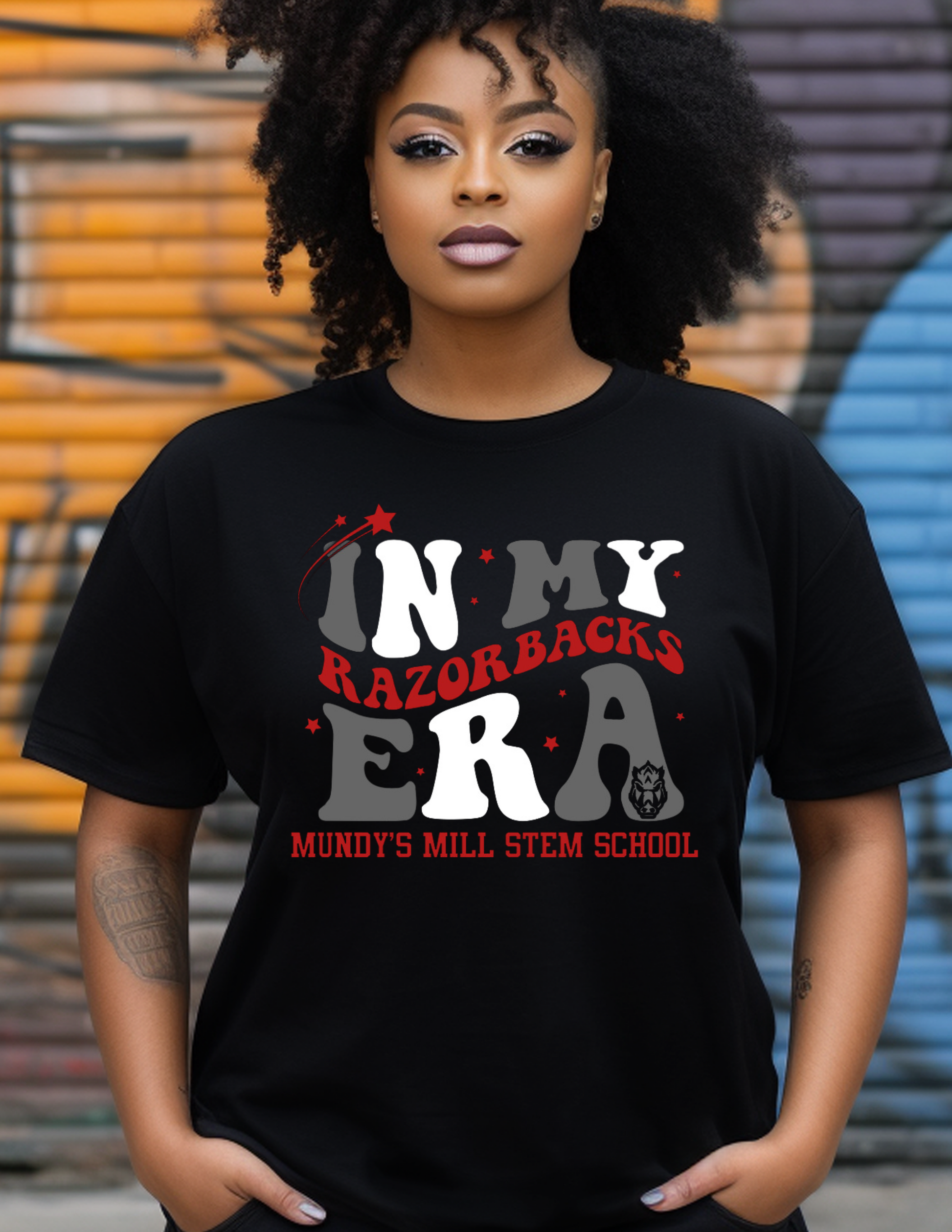The "In My/Our Era" T-shirt is a standout piece designed to make a statement with both style and substance. Crafted from 100% premium cotton, it delivers unparalleled softness and breathability for ultimate comfort. The shirt features a modern, eye-catching graphic that highlights the phrase "In My Era" or "In Our Era," adding a personal touch to your wardrobe. Its classic fit ensures a flattering look for all body types, while the high-quality materials promise durability and long-lasting wear. Perfect for showcasing your era with Razorback pride, this T-shirt is a versatile addition to any casual outfit.