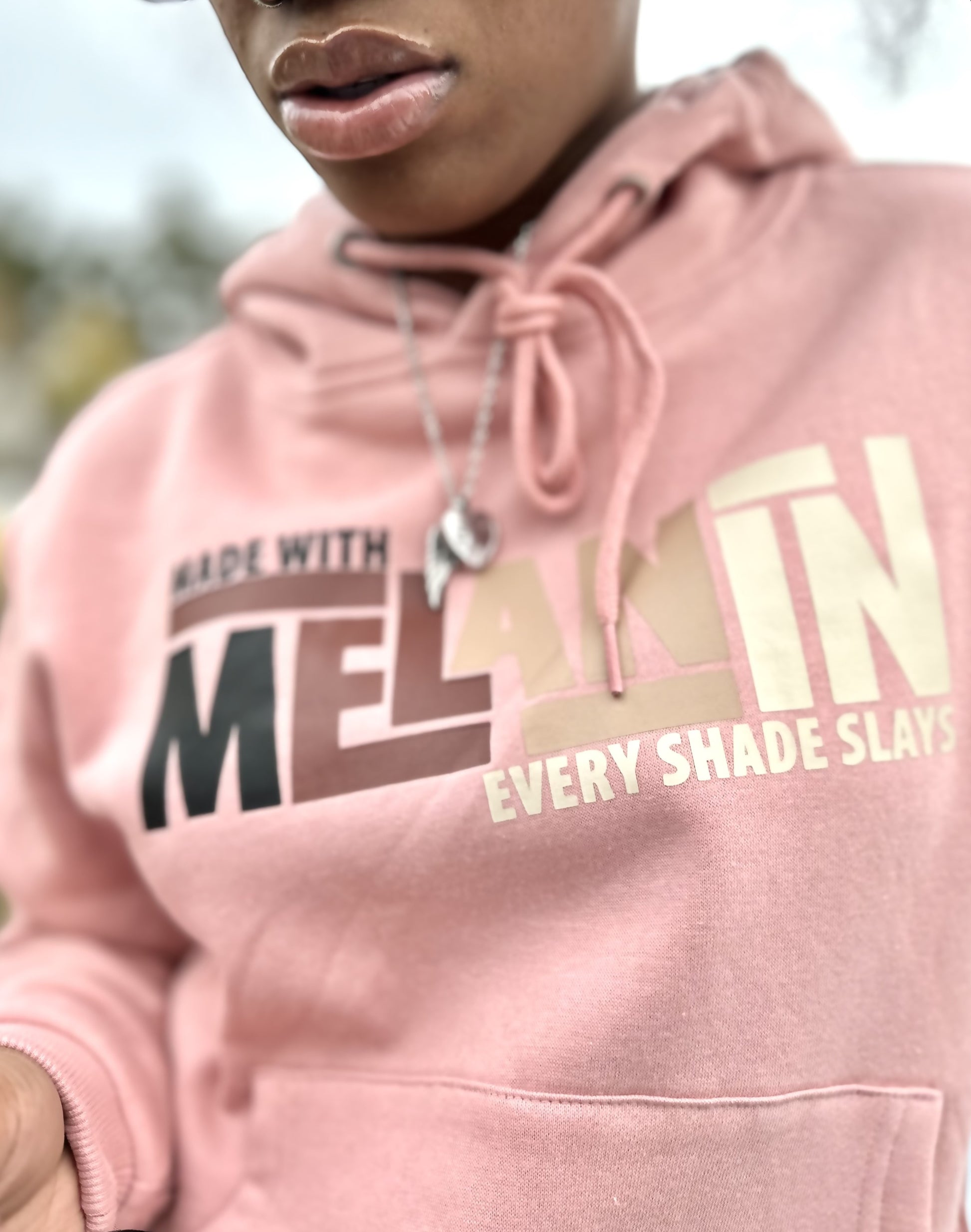 Introducing the MELANIN IN EVERY SHADE Hoodie, crafted with premium HTV and emblazoned with the empowering phrase "Made with Melanin Every Shade Slays." Celebrate diversity and showcase your style with this stunning statement piece. Feel confident and stylish with every wear.